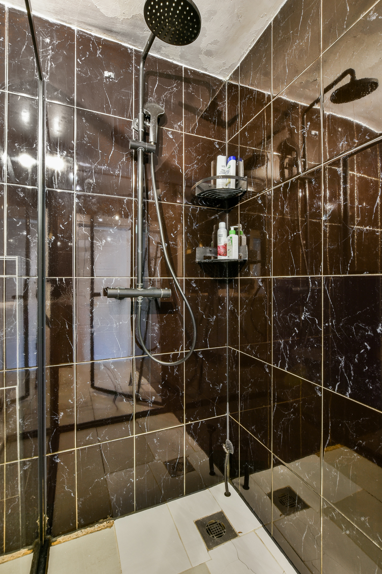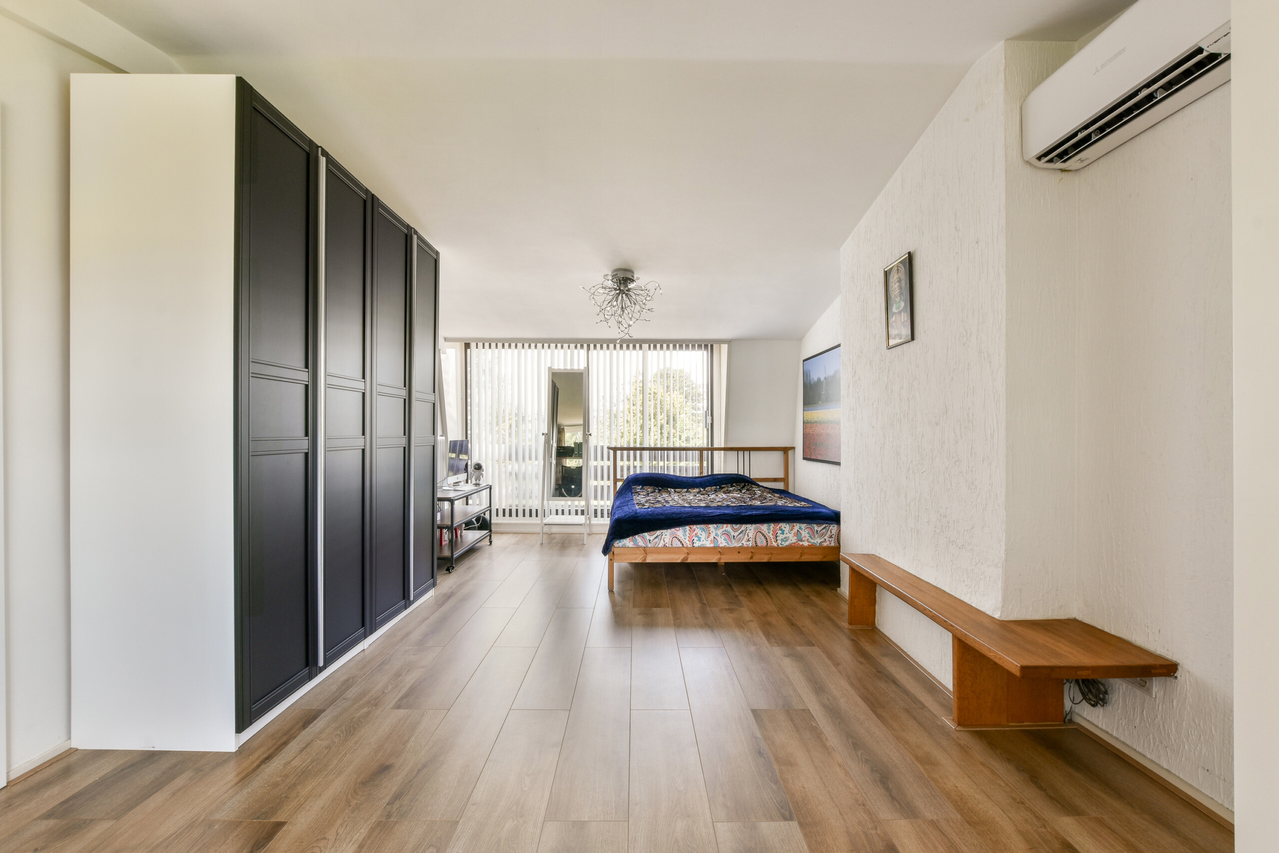 Op de zolderverdieping is er nog een mega grote slaapkamer aanwezig die door de huidige eigenaren is ingedeeld als werk- en slaapkamer met een moderne privé badkamer voorzien van inloopdouche met hand- & regendouche, toilet en wastafelmeubel. Je zou deze verdieping eenvoudig nog kunnen opdelen in 2 verschillende ruimtes door het plaatsen van een muurtje.
