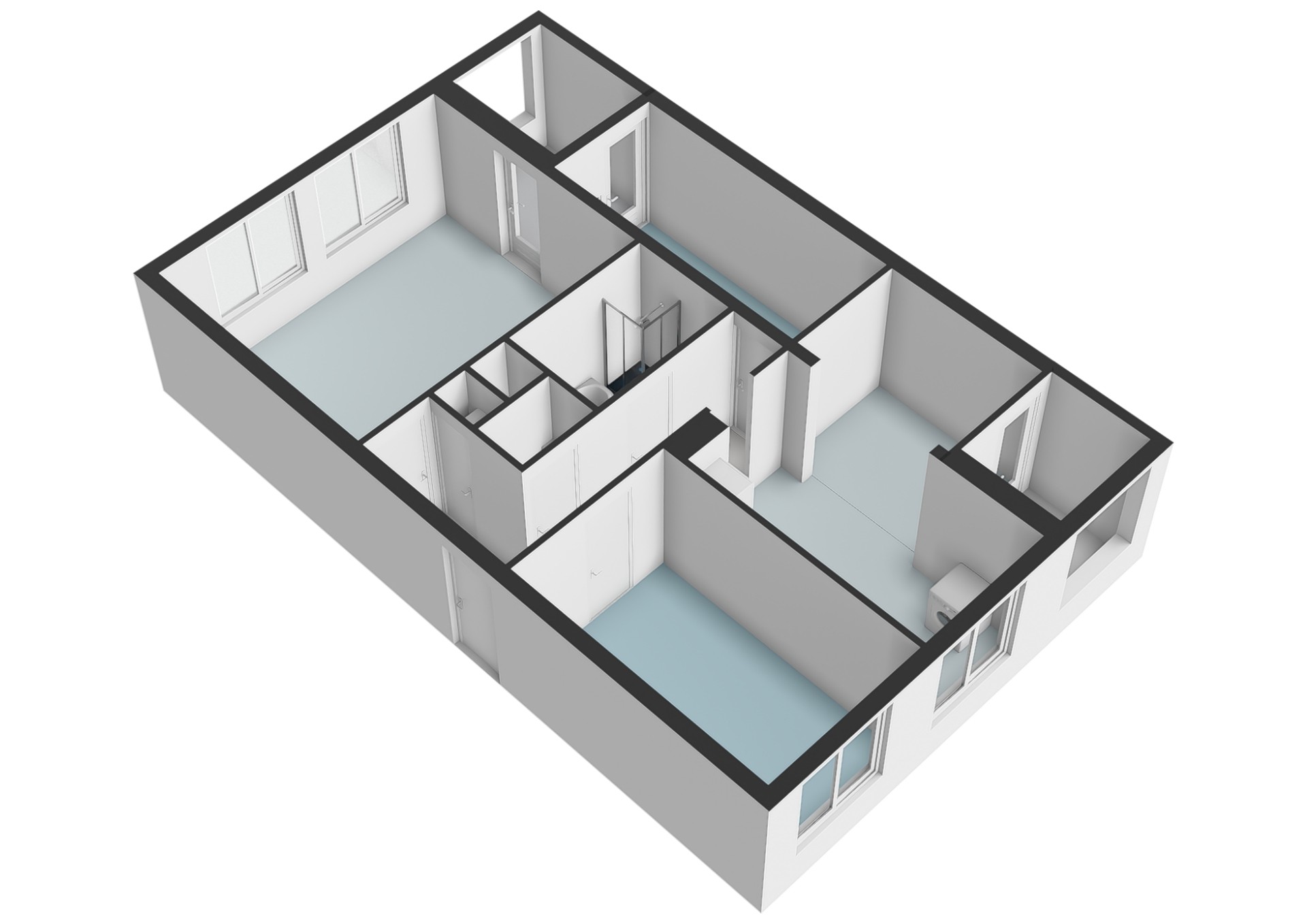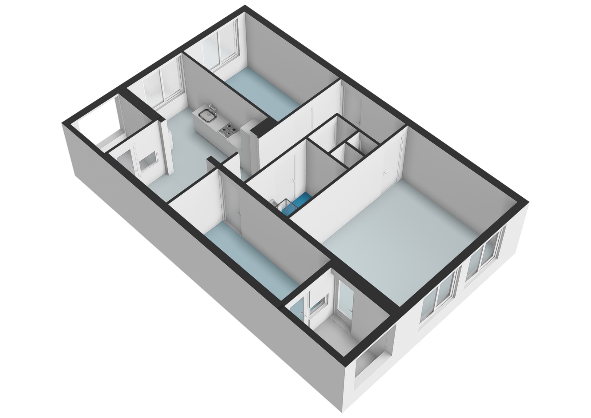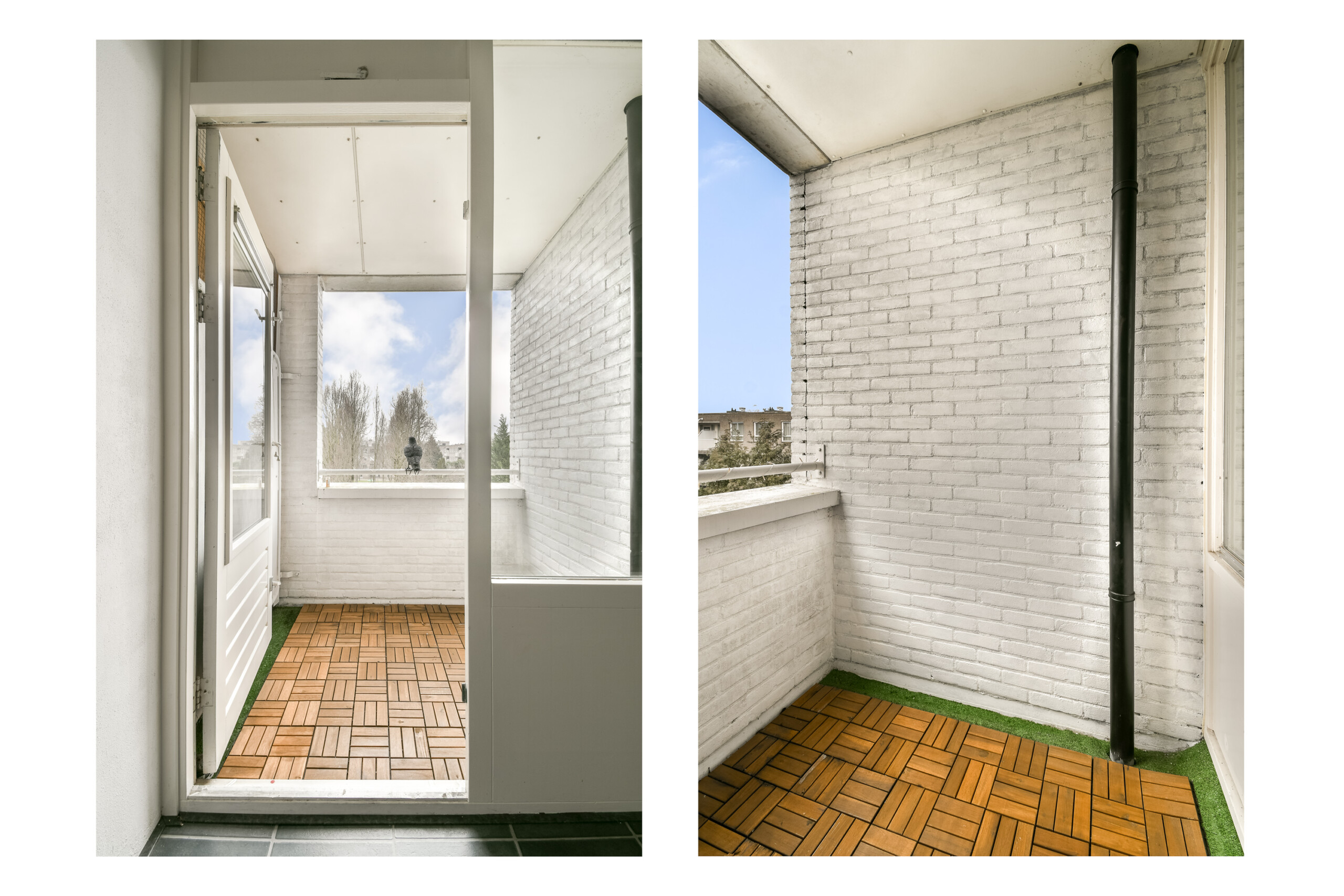 Via het gemeenschappelijke trappenhuis bereik je de woning op de derde verdieping. De hal geeft toegang tot alle vertrekken. De ruime en lichte woonkamer biedt volop plek voor een zithoek en een eettafel, met toegang tot het eerste balkon dat uitzicht geeft over het water. De keuken, met voldoende ruimte voor een gezellige eethoek, grenst aan de woonkamer en kijkt uit op de groene binnentuin.