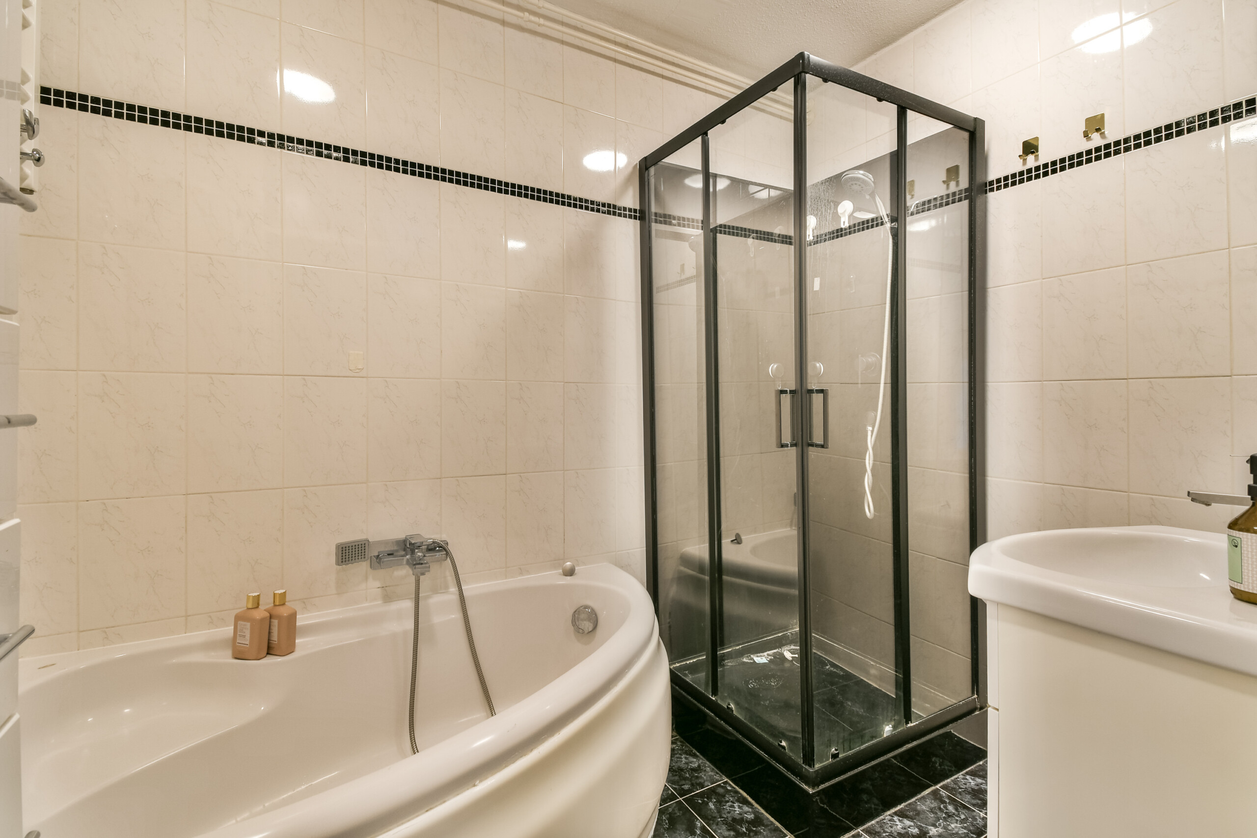 De woning beschikt over twee slaapkamers: de eerste slaapkamer ligt direct rechts bij binnenkomst, de tweede slaapkamer bevindt zich aan het einde van de hal en heeft toegang tot het tweede balkon. De badkamer is modern en praktisch ingericht, met zowel een douchecabine als een ligbad. Er is een keurig separaat toilet.
