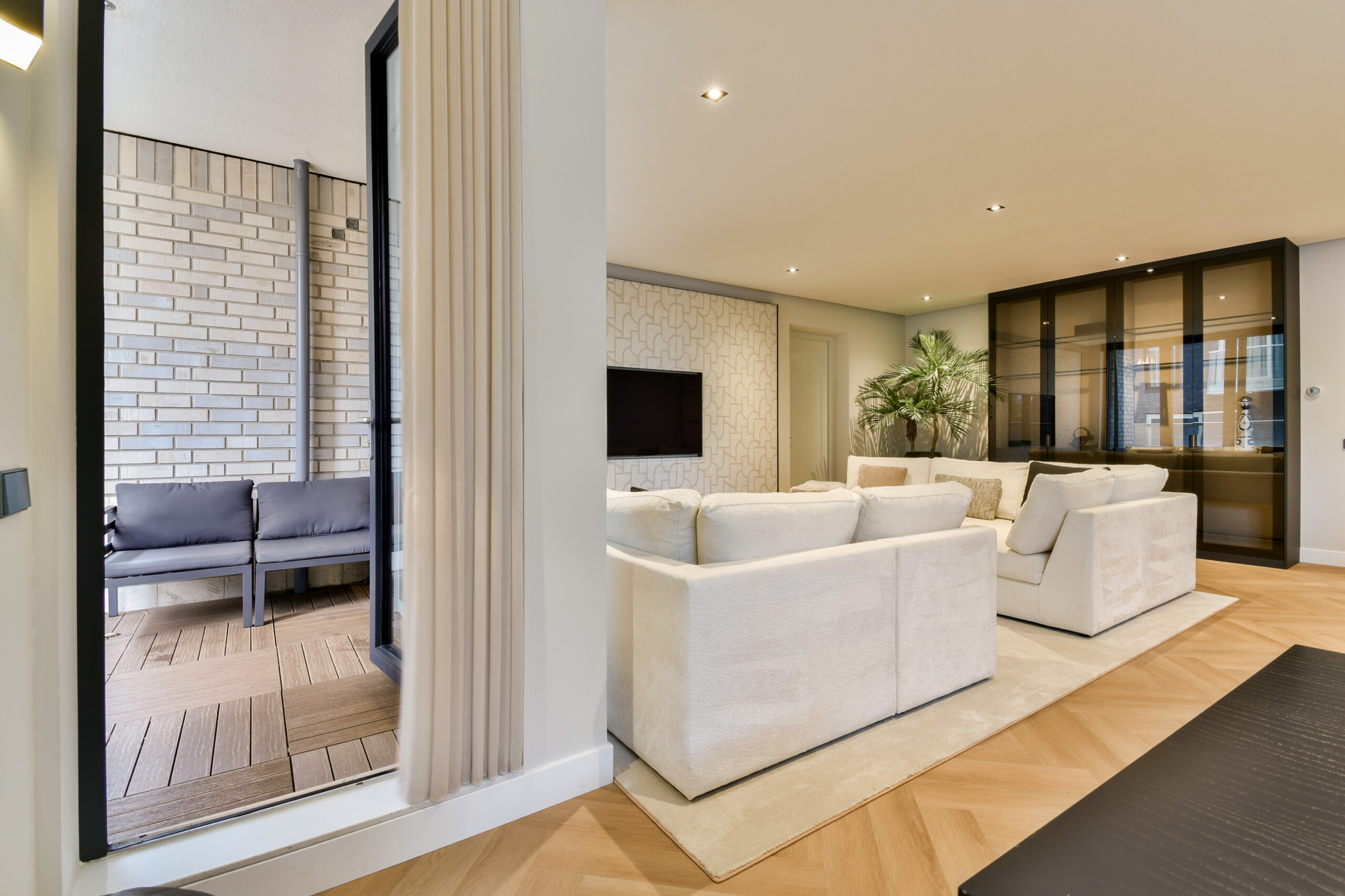 Het turn key appartement is van alle luxe voorzien en heeft veel op maat gemaakte details. Door de keuze van de materialen is het appartement een gebalanceerd geheel.