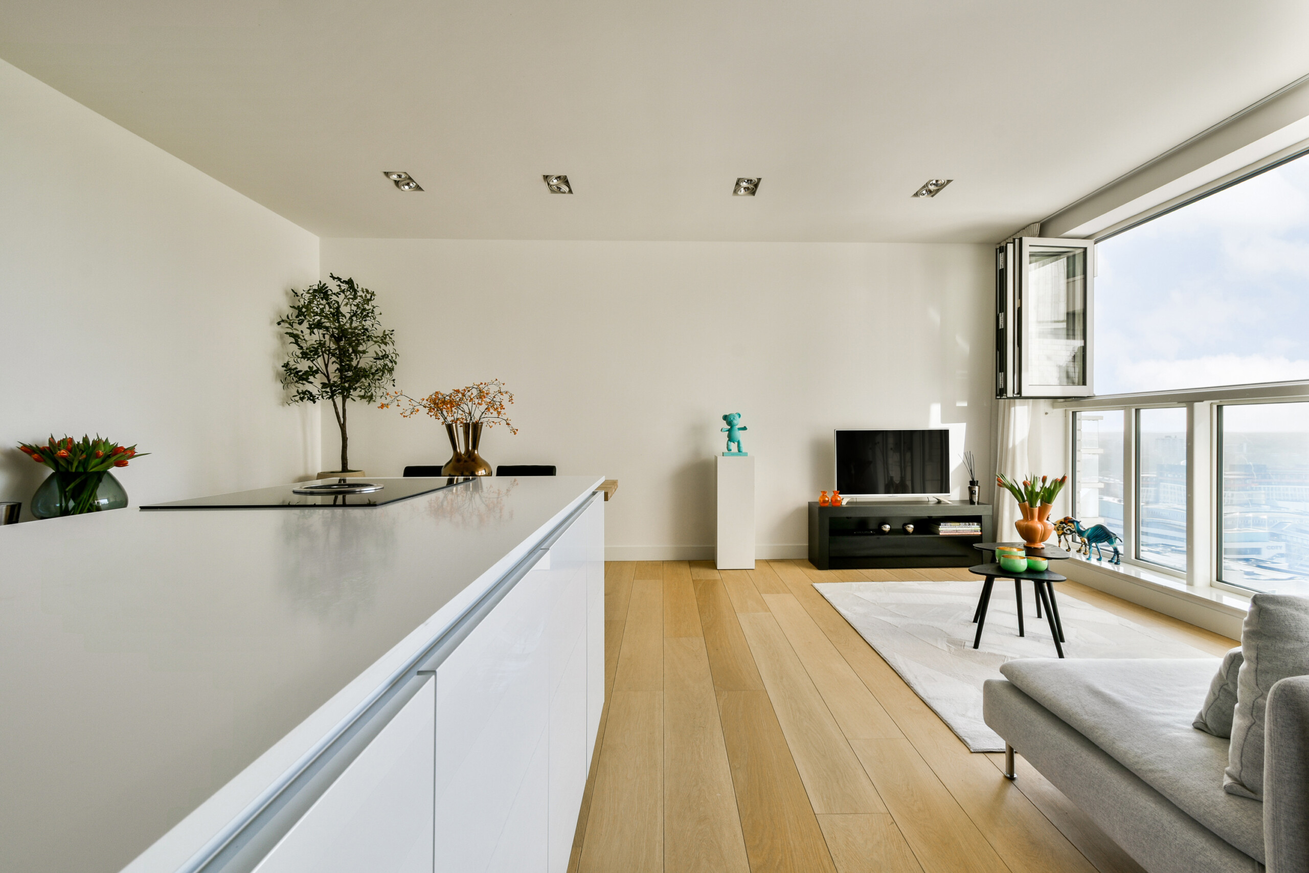 In this building, we offer a distinctive and beautifully finished apartment of over 65 m², with stunning views of the Zuidas business district, the Nieuwe Meer lake, Schiphol Airport, Amstelveen, and dozens of kilometers beyond.