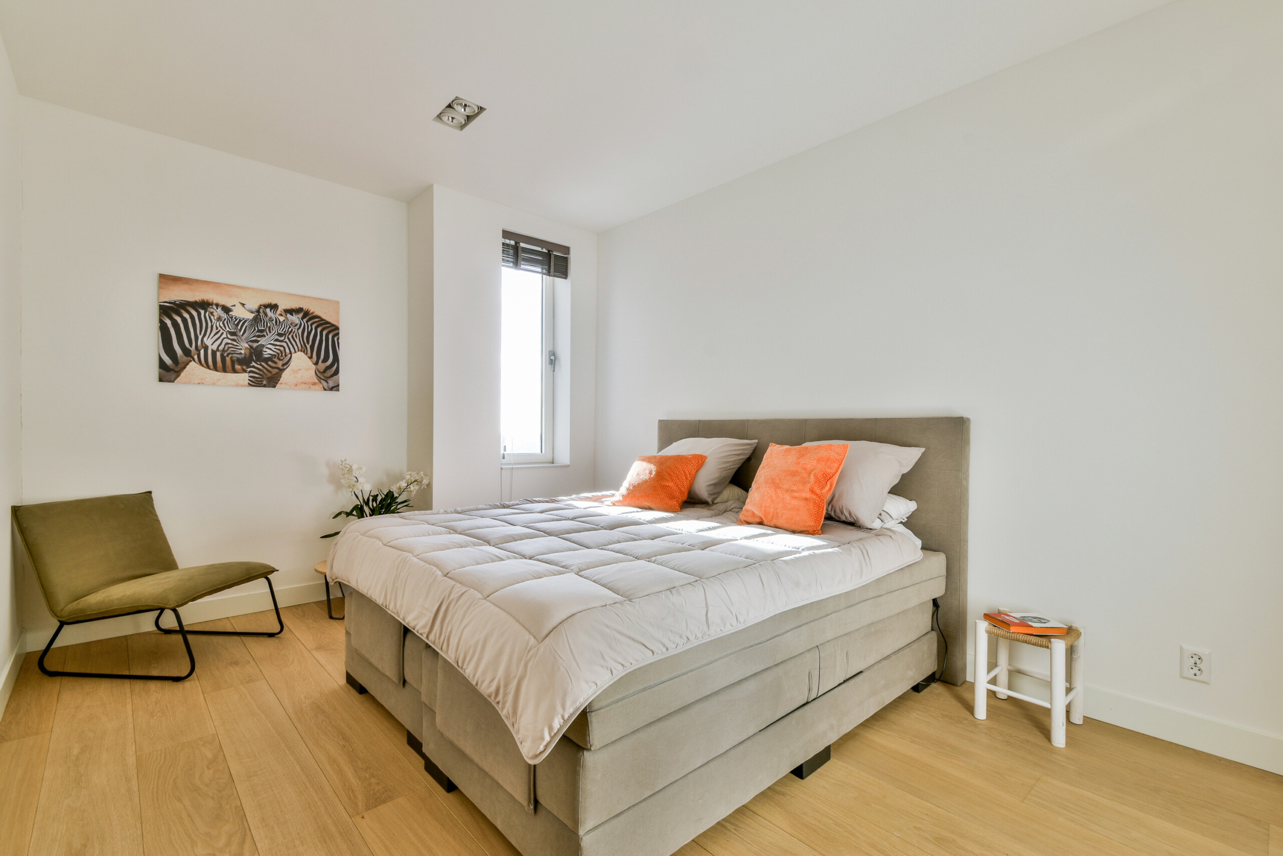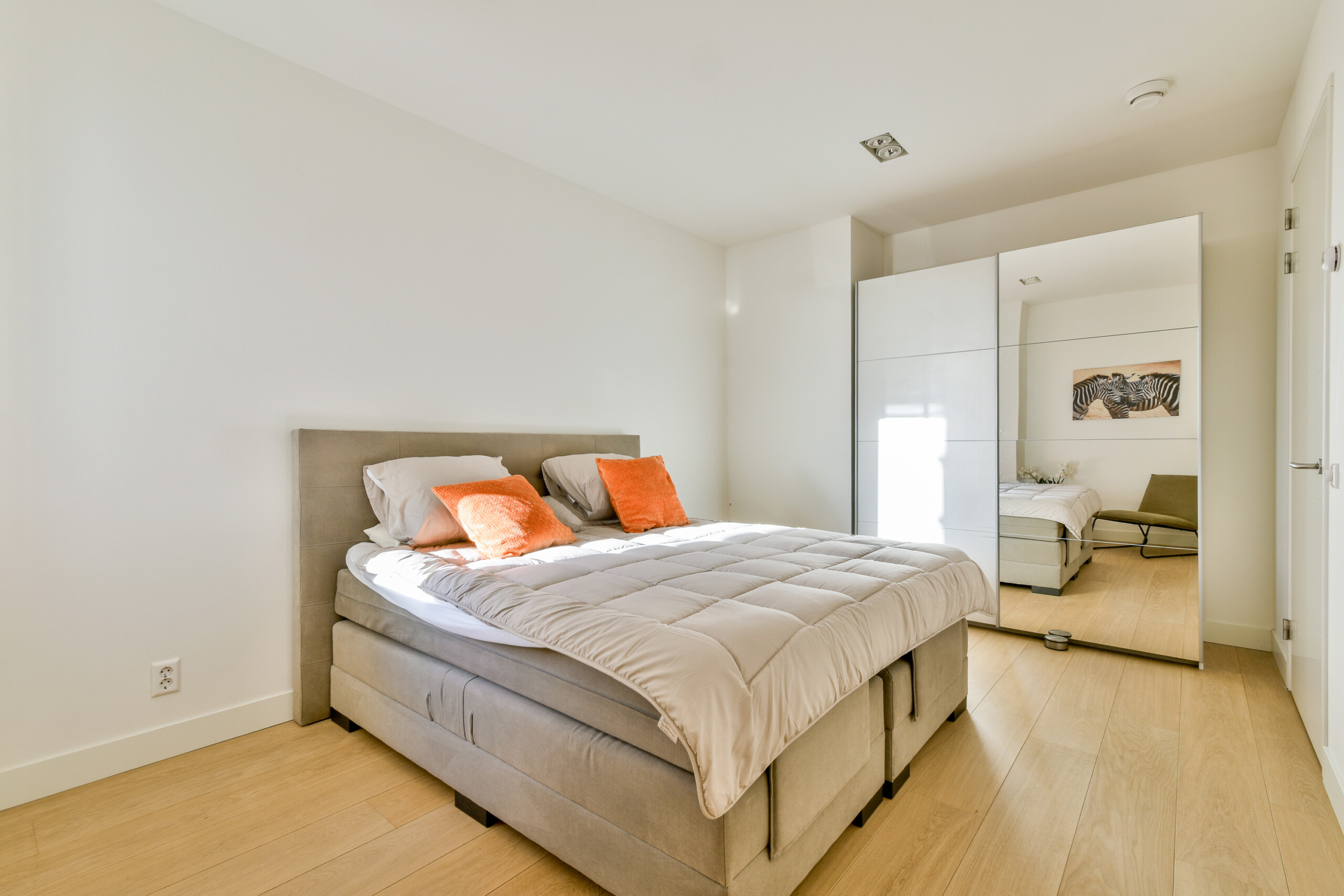 • Ruime slaapkamer en een luxe badkamer met dubbele inloopdouche;