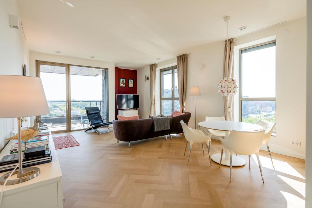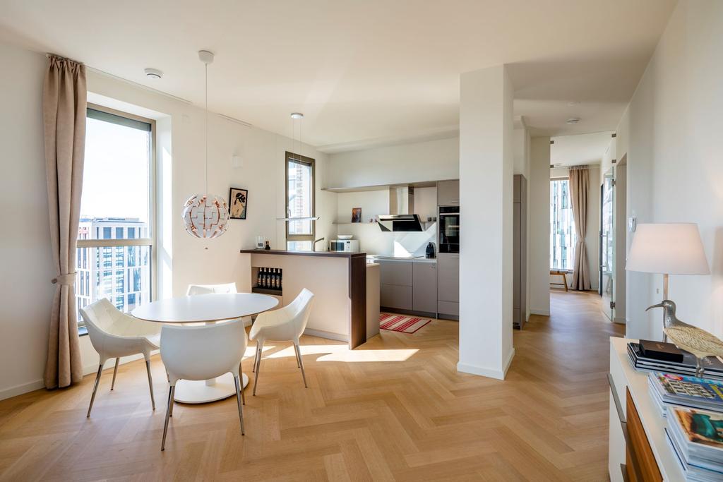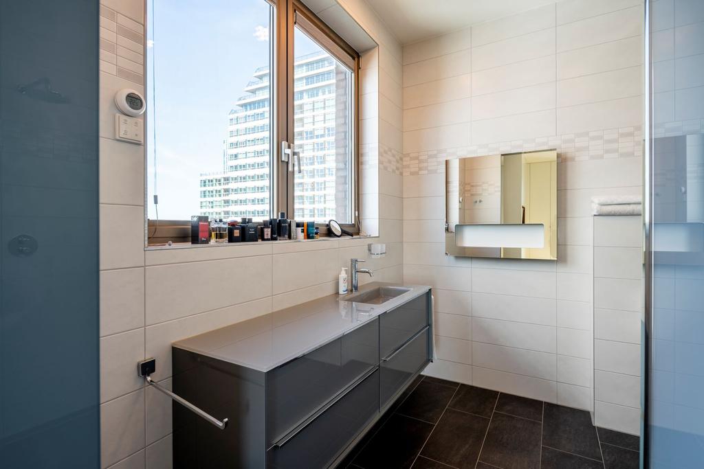 The apartment also has a beautiful neutral light wooden floor in herringbone pattern with underfloor heating. The bathroom is very nice and perfectly finished including urinal. There is also a second bathroom in the apartment. Furthermore, the apartment is equipped with an extensive domotica system with alarm system and Sonos music system.
