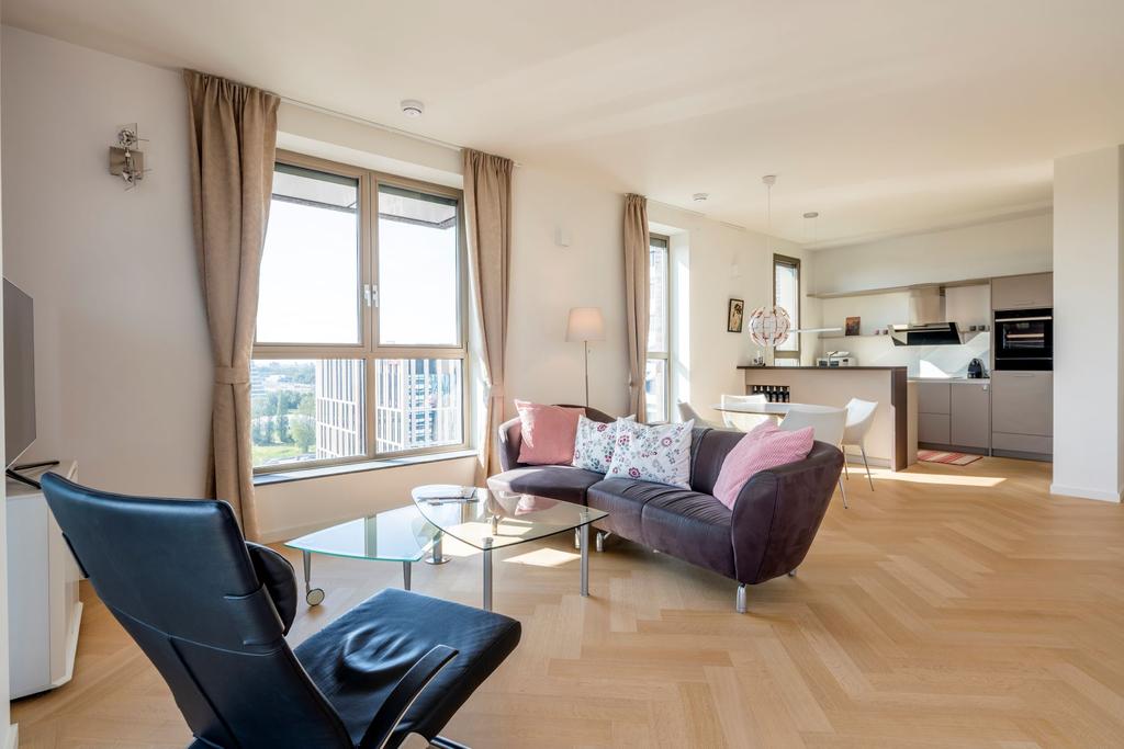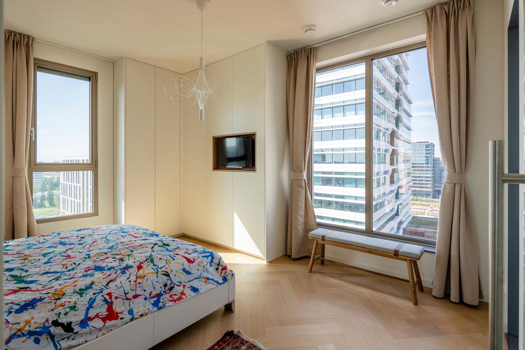 Great 2 bedroom corner apartment of approximately 106 m2 with 2 bedrooms, 2 bathrooms and a sunny south facing terrace in perhaps the most beautiful building of the Zuidas. This apartment is offered fully furnished.