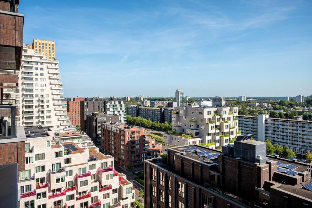 Dit luxe appartement bevindt zich aan de zuid, west- en noordzijde van het 900 Mahler gebouw en heeft met name richting de zuid- en de westzijde een geweldig uitzicht. De zeer fraaie woning beschikt over hoge plafonds van circa 3 meter en is gelegen op de 13e etage.