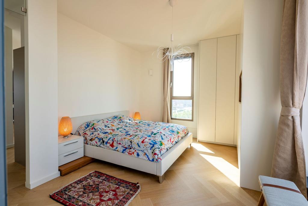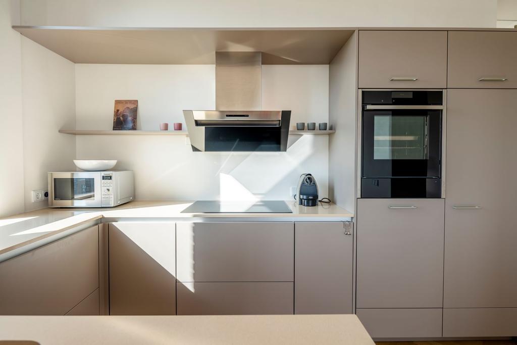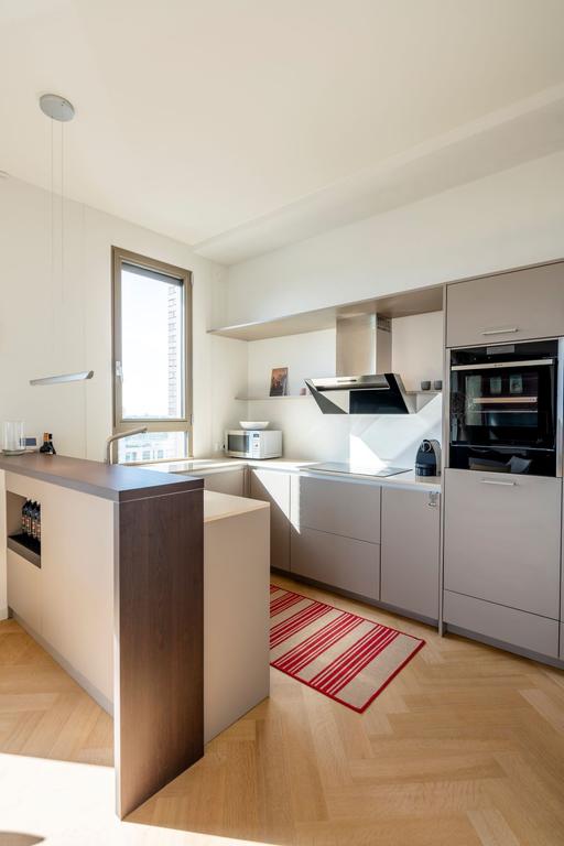 In 2016, the bright new construction apartment was very tastefully finished with high quality materials and equipped with a complete luxury custom kitchen. The kitchen is equipped with various built-in appliances. The apartment is beautifully furnished (the furniture in the photos differ from the actual furniture currently in the apartment).