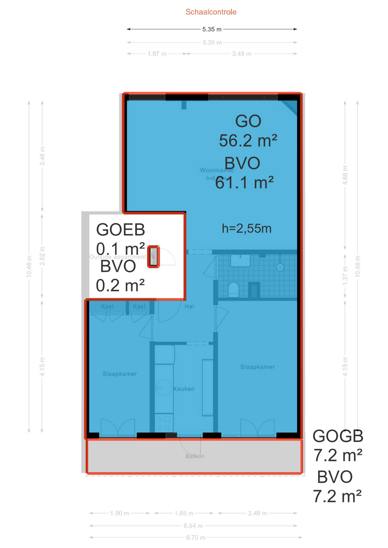 – Conform NVM regels NEN2580 opgemeten, wonen 56,20m2, gebouw gebonden buitenruimte 7,20m2;