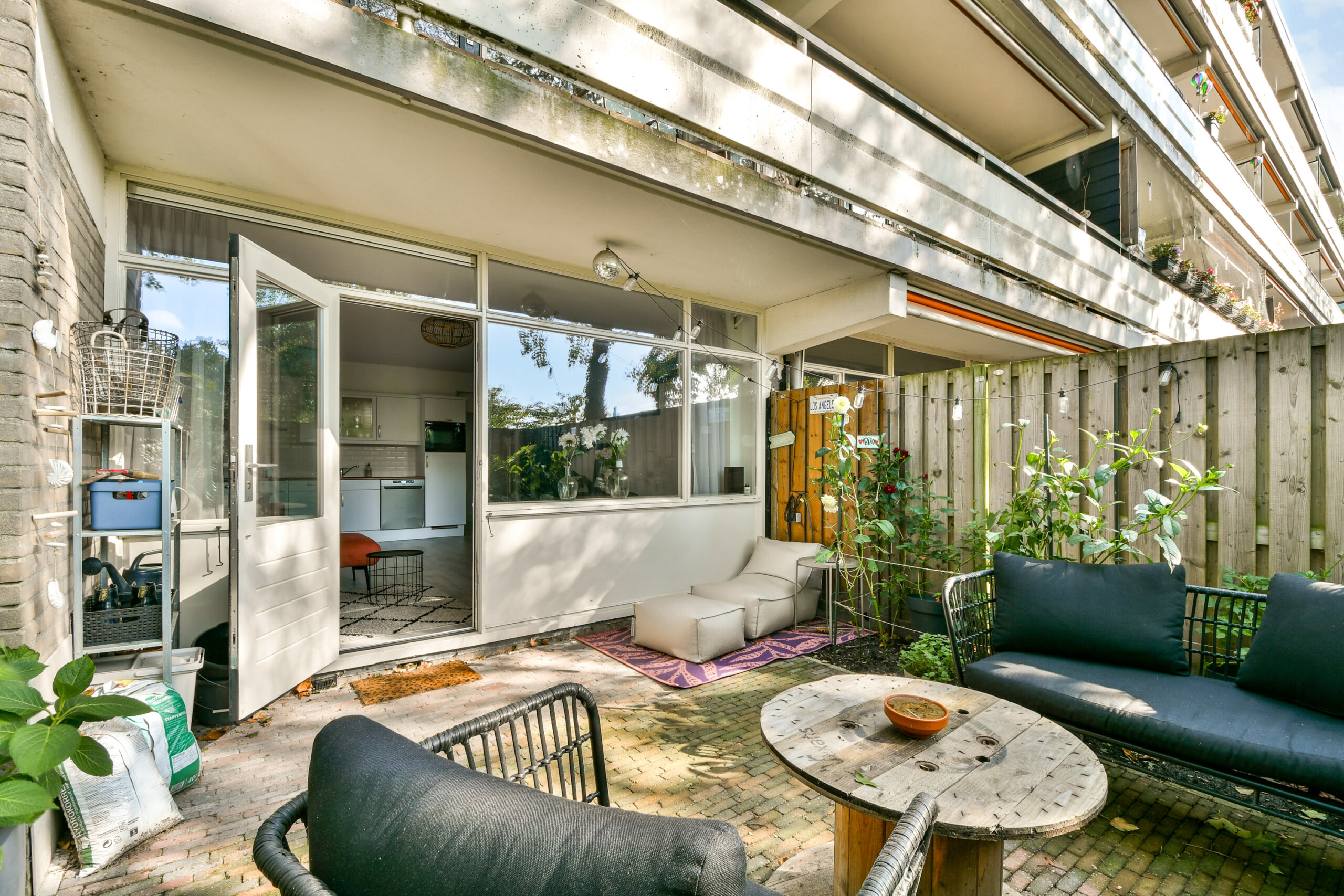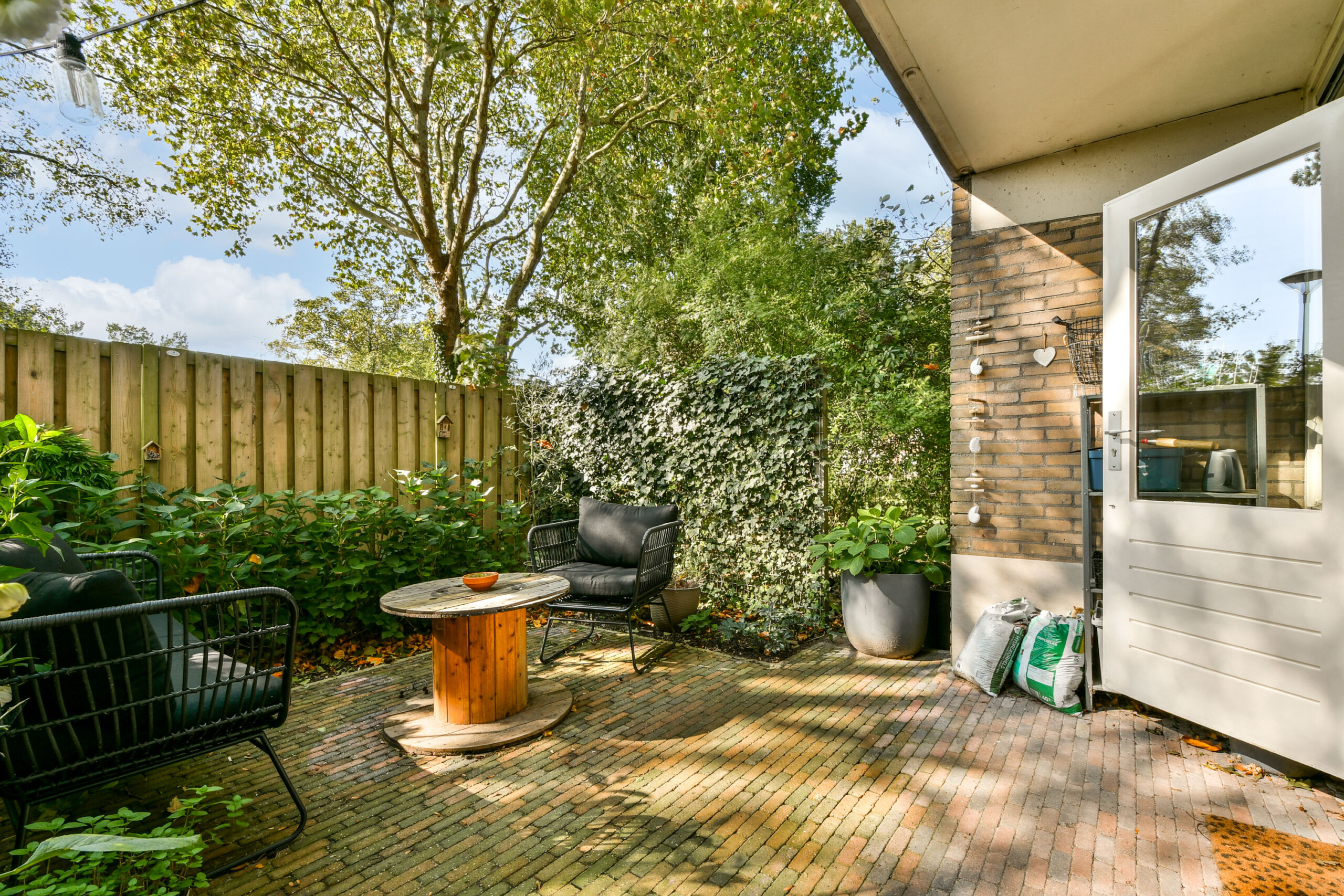 De woning beschikt over zowel een voortuin als een achtertuin. De achtertuin ligt op het zonnige zuiden en vormt een heerlijke plek om te ontspannen en te genieten. Ook is er nog een privé berging aanwezig, deze ligt verderop bij de algemene toegang van het complex. Ideaal voor de spullen die je niet dagelijks gebruikt!