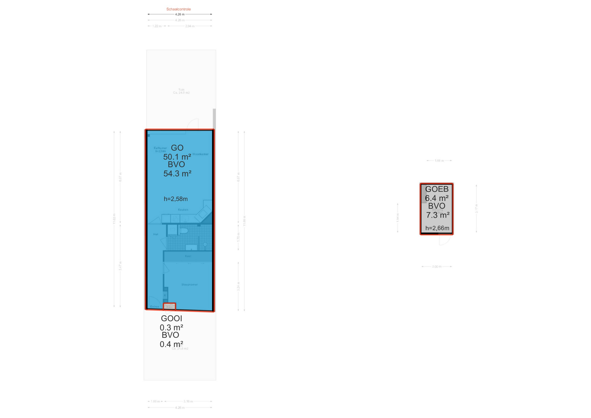 – Conform NVM regels NEN2580 opgemeten, wonen 50,10m2 en externe bergruimte 6,40m2;